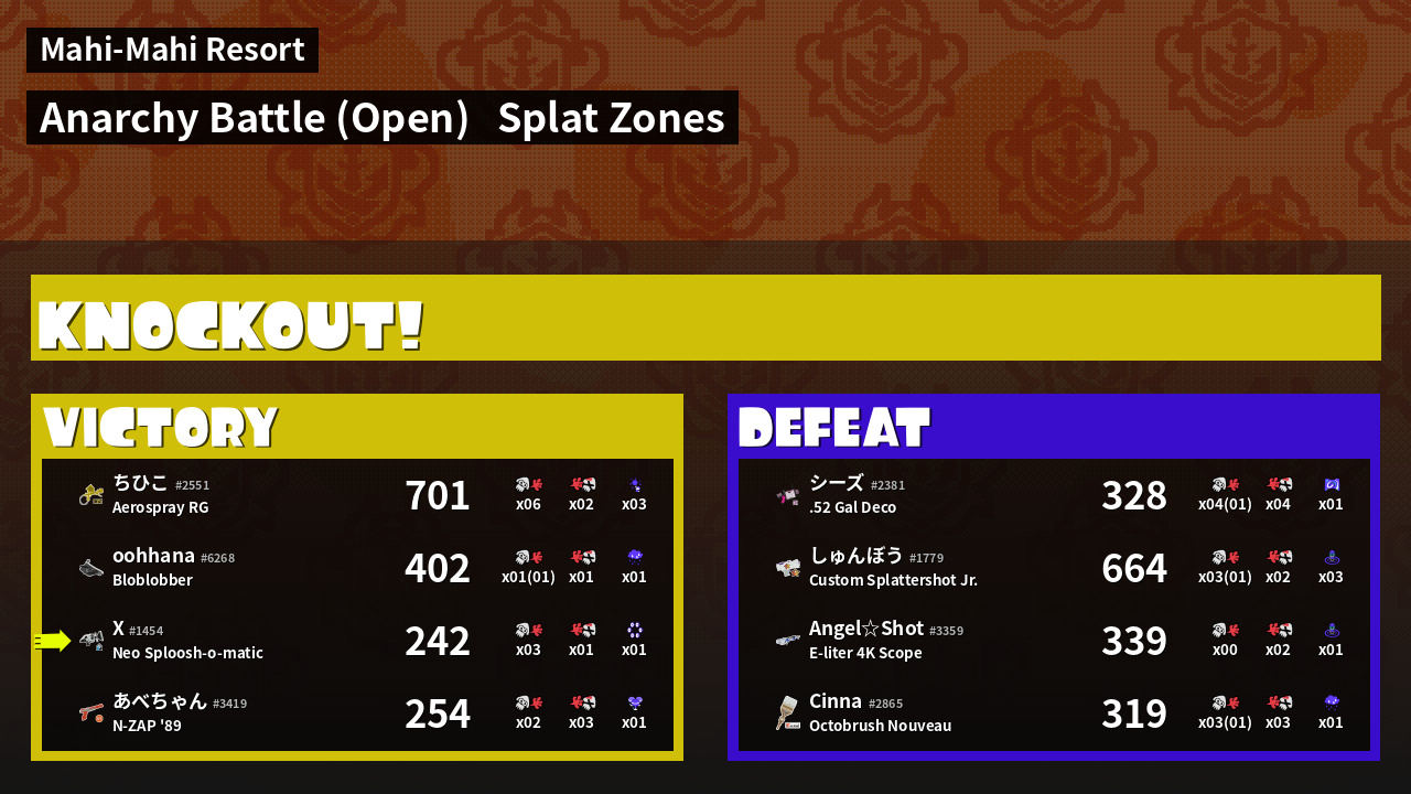 | Mode | Splat Zones - Anarchy Battle (Open) | ||