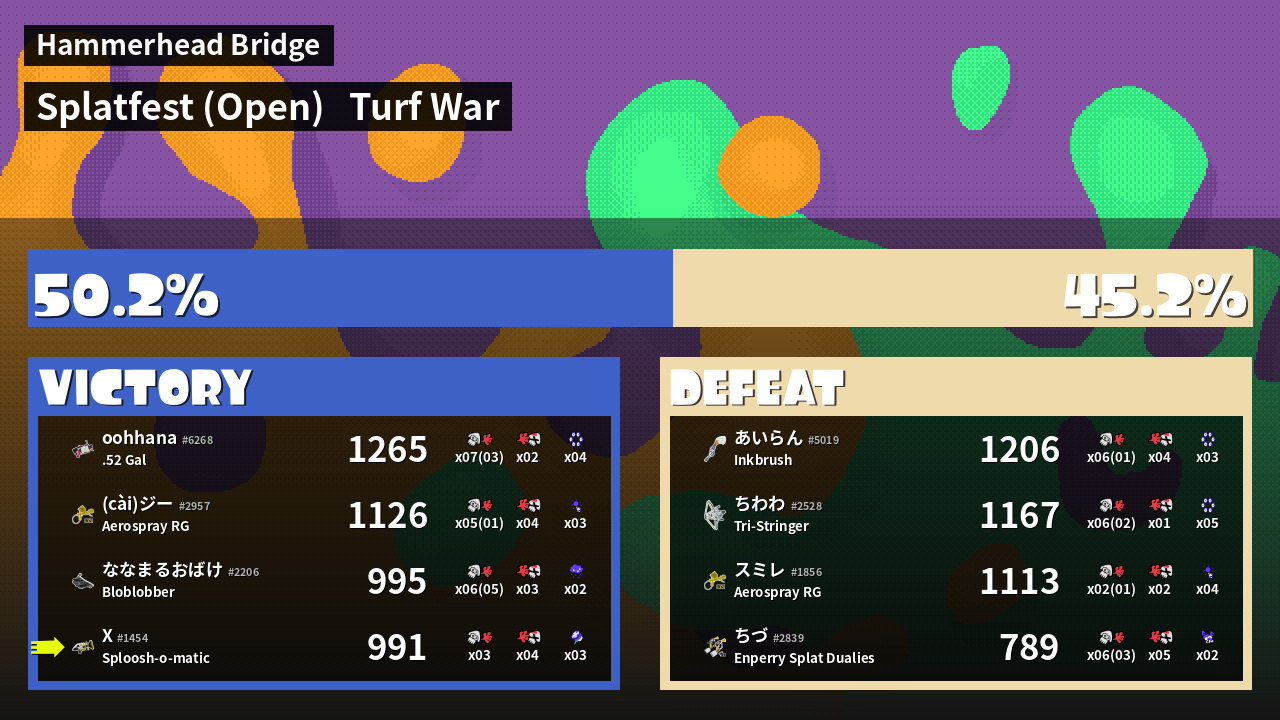 | Weapon | Sploosh-o-matic ( Curling Bomb / Ultra Stamp) | ||