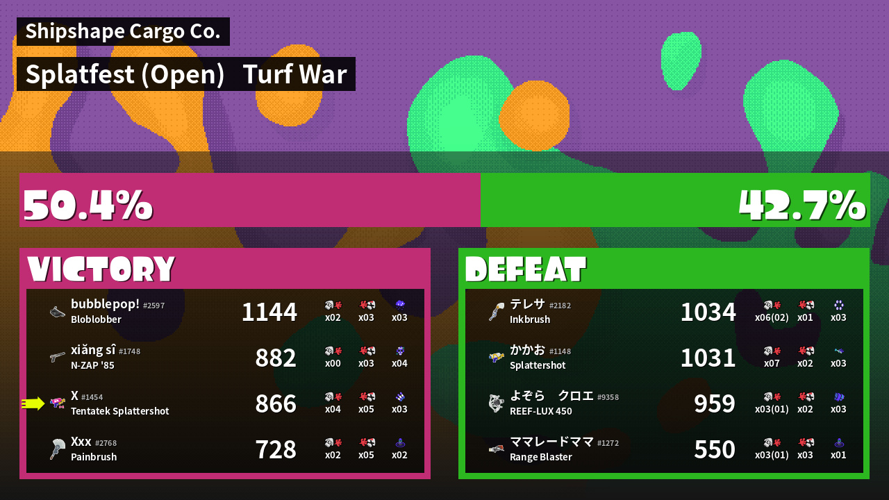 | Medals | #1 Overall Splatter #1 Enemy Splatter #2 Popular Target | ||