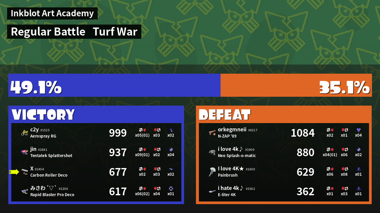 | Mode | Turf War - Regular Battle | ||