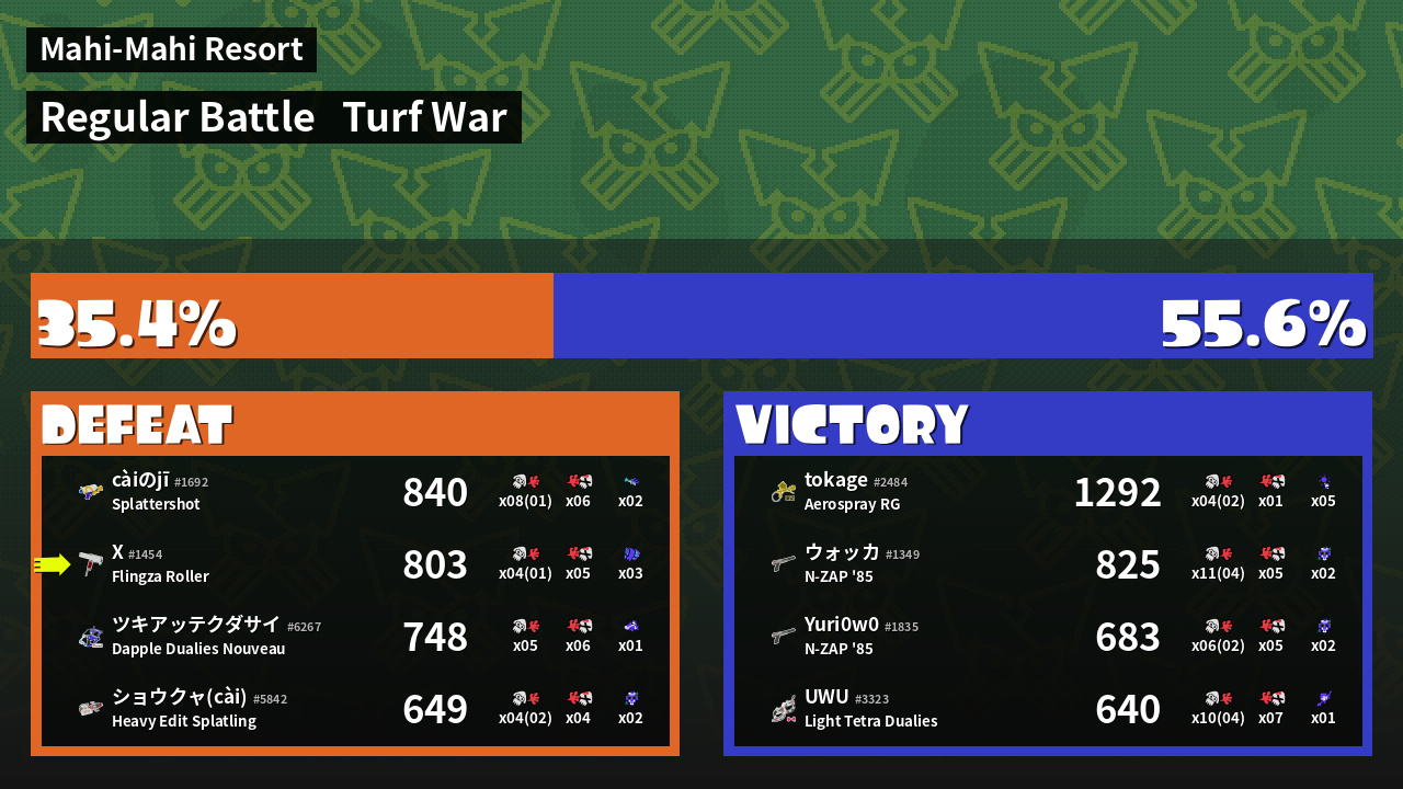 | Mode | Turf War - Regular Battle | ||