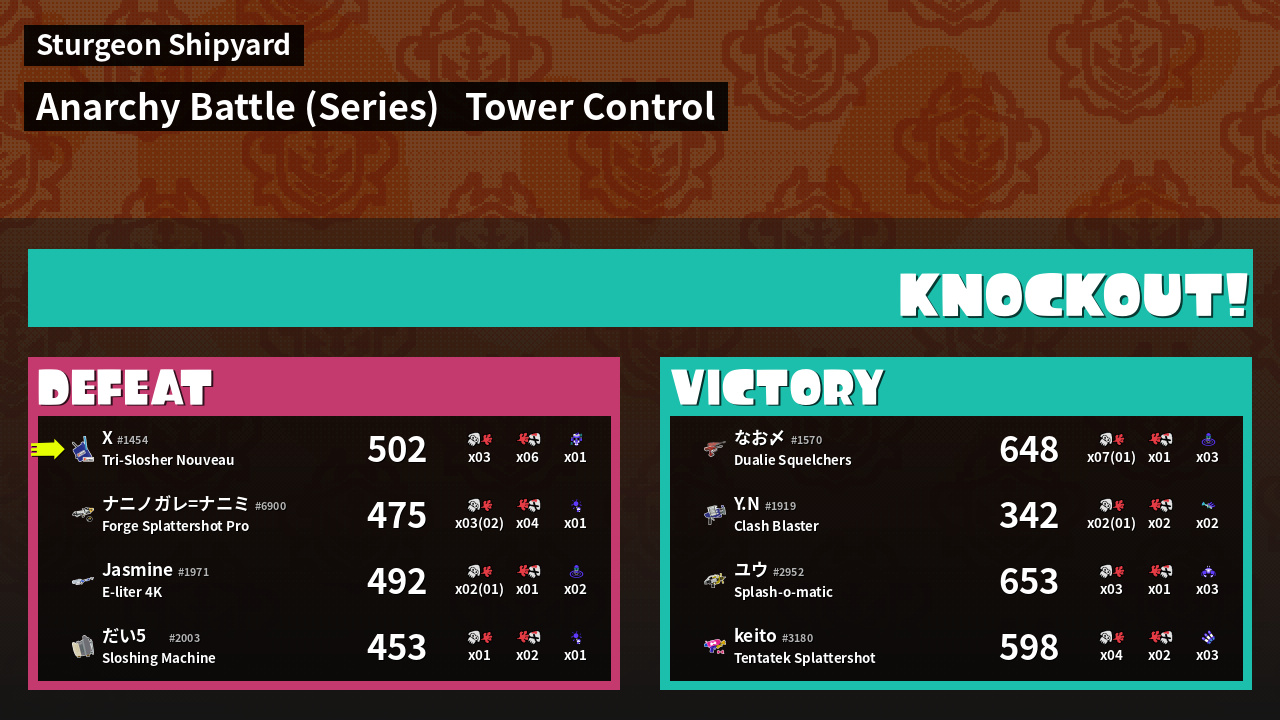 | Medals | #1 Overall Splatter #1 Turf Inker #1 Enemy Splatter | ||