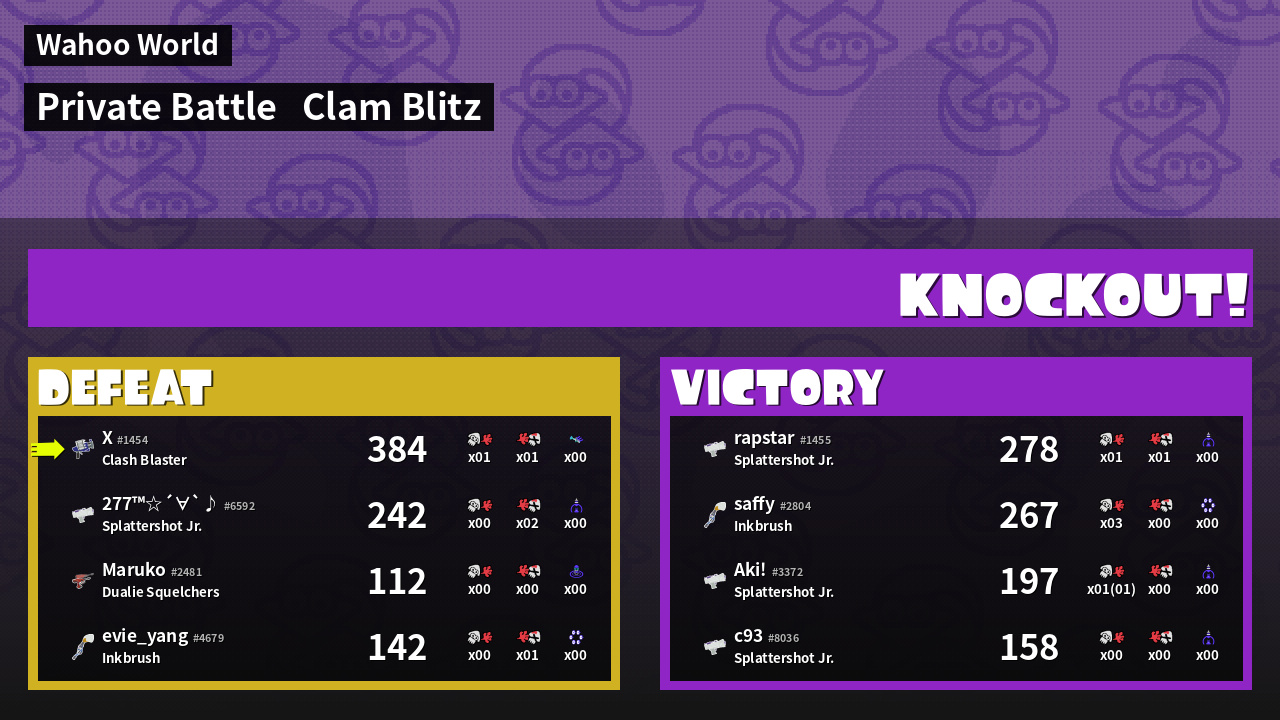 | Medals | #1 Overall Splatter #1 Turf Inker #1 Enemy Splatter | ||