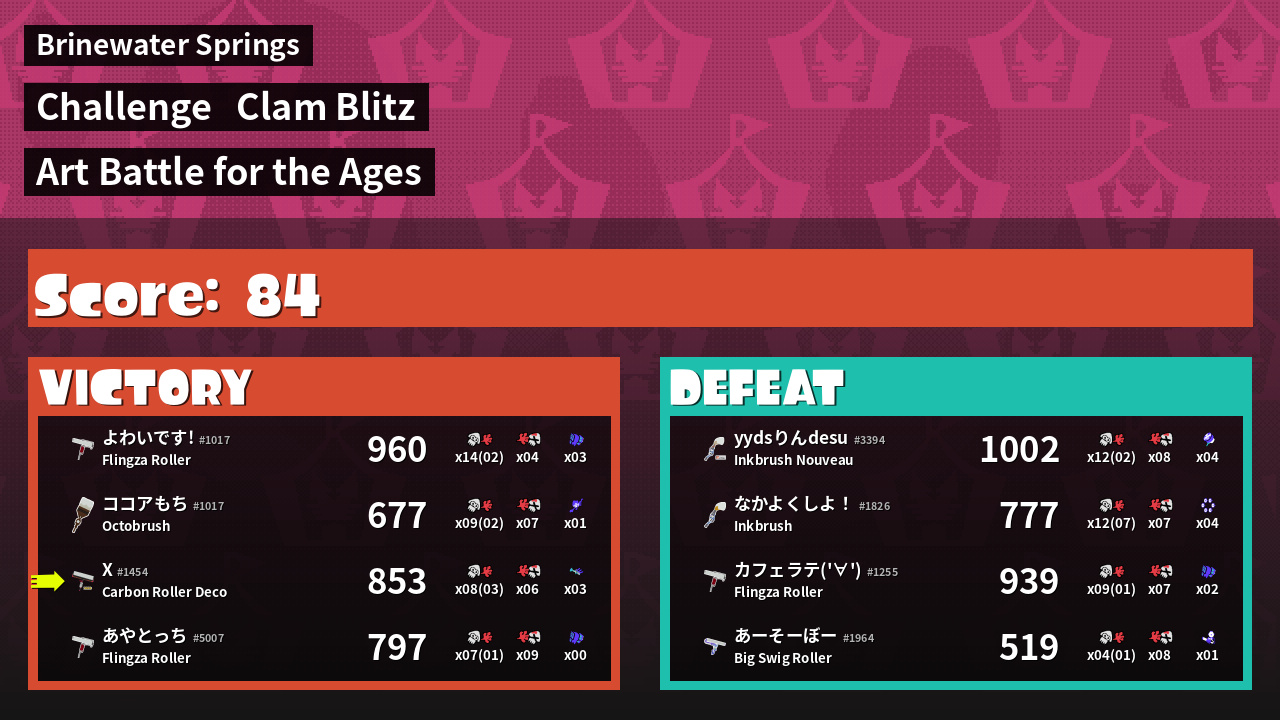 | Medals | #1 Splat Assister #1 Ink Consumer #1 Trizooka User | ||