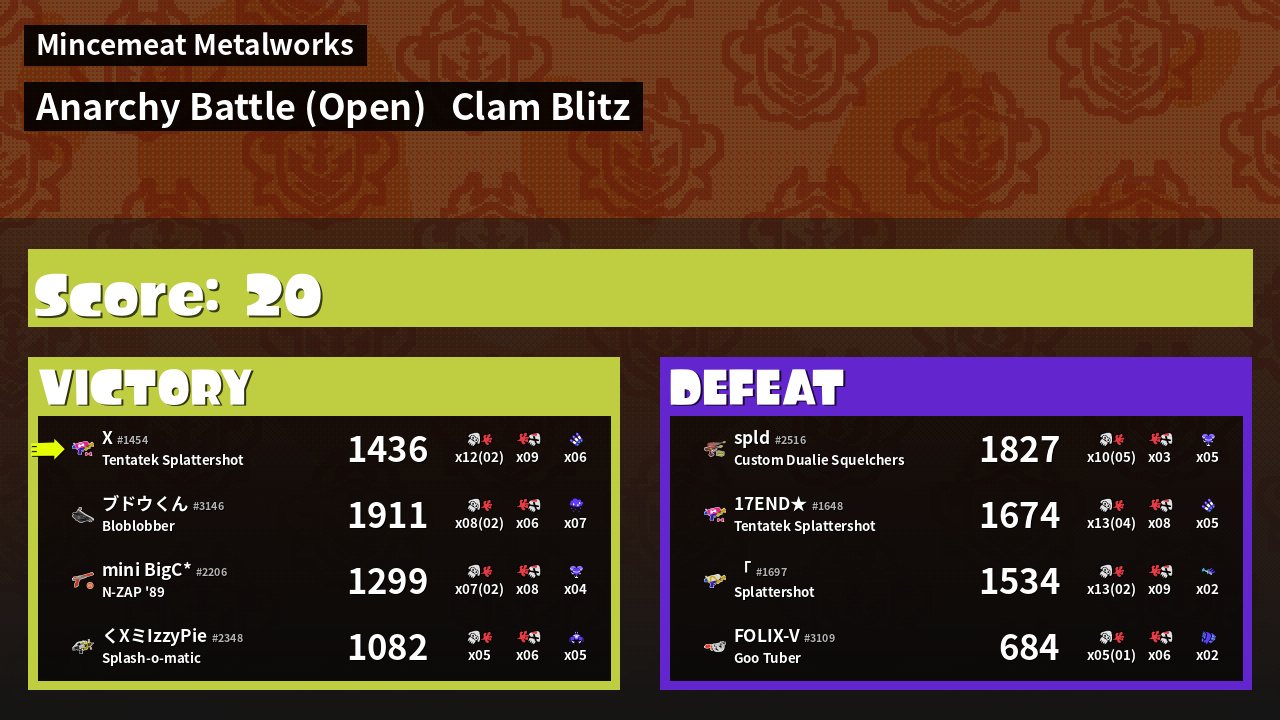 | Mode | Clam Blitz - Anarchy Battle (Open) | ||
