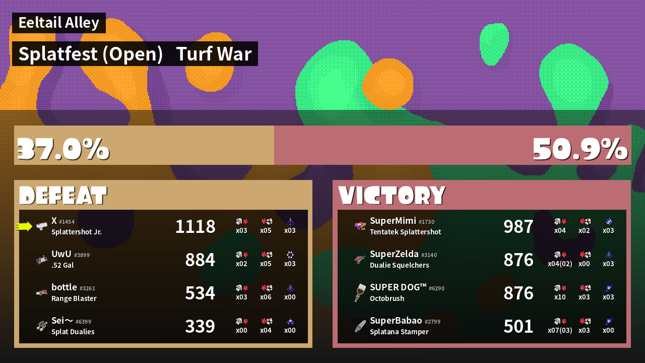 | Medals | #1 Overall Splatter #1 Turf Inker #1 Enemy-Base Inker | ||