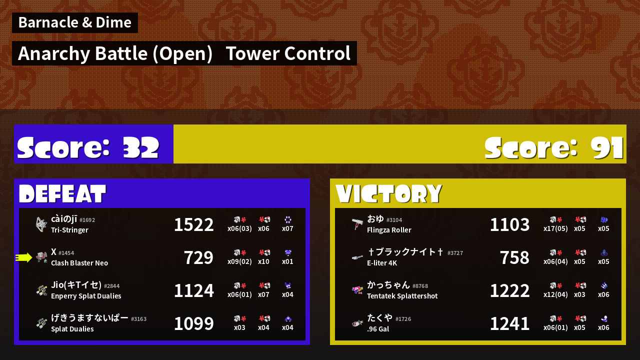 | Mode | Tower Control - Anarchy Battle (Open) | ||