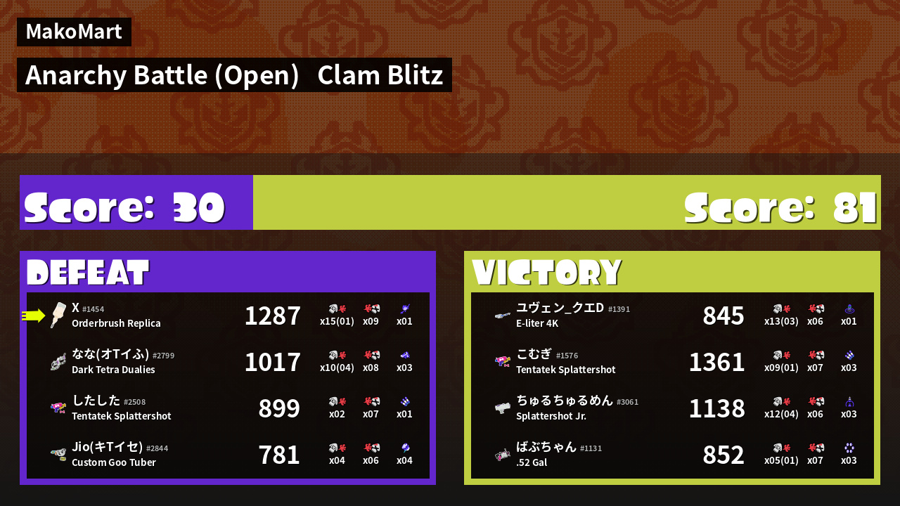 | Mode | Clam Blitz - Anarchy Battle (Open) | ||