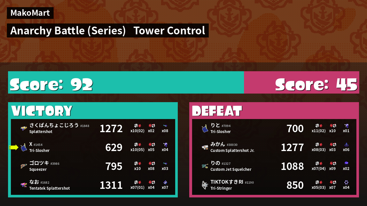 | Mode | Tower Control - Anarchy Battle (Series) | ||