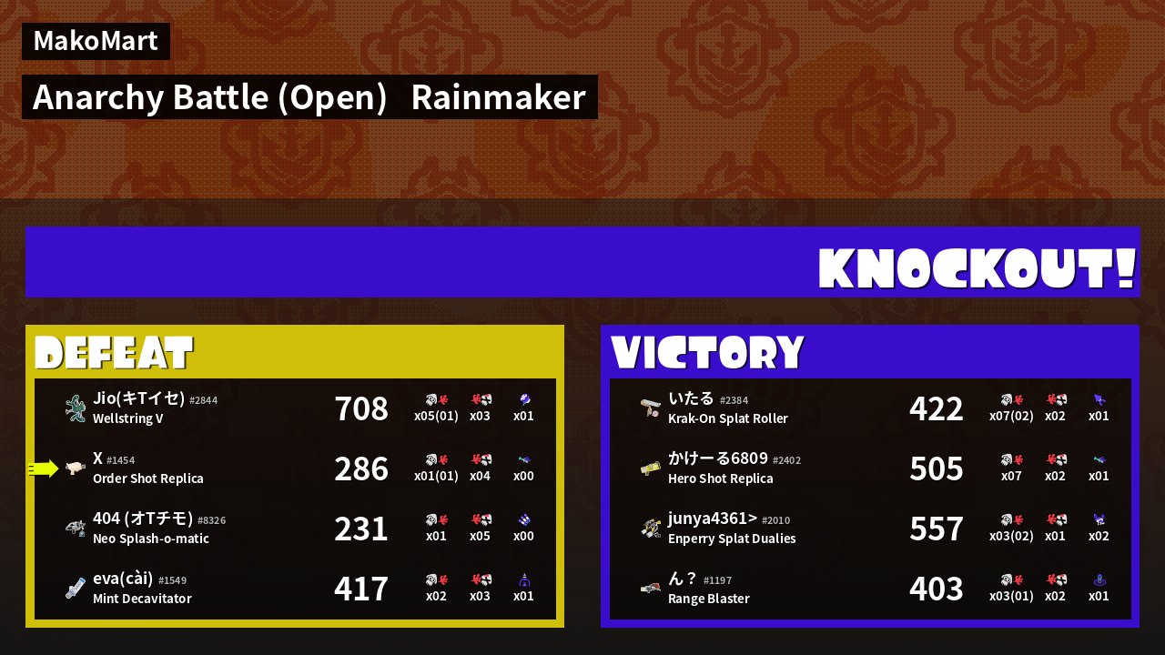 | Mode | Rainmaker - Anarchy Battle (Open) | ||