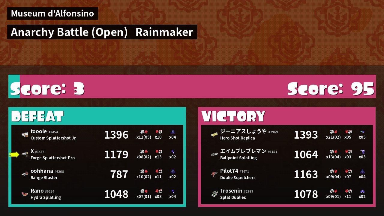 | Mode | Rainmaker - Anarchy Battle (Open) | ||