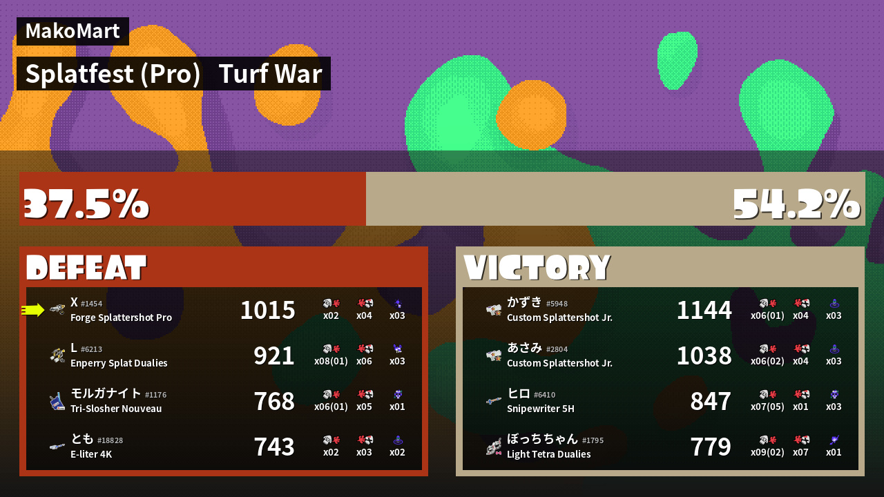 | Mode | Turf War - Splatfest (Pro) | ||