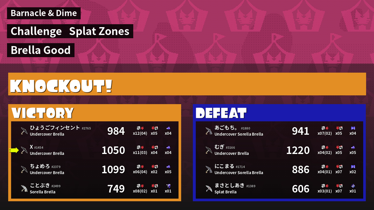 | Medals | #1 Splat Zone Inker #1 Enemy Splatter #1 Splat Zone Hero | ||