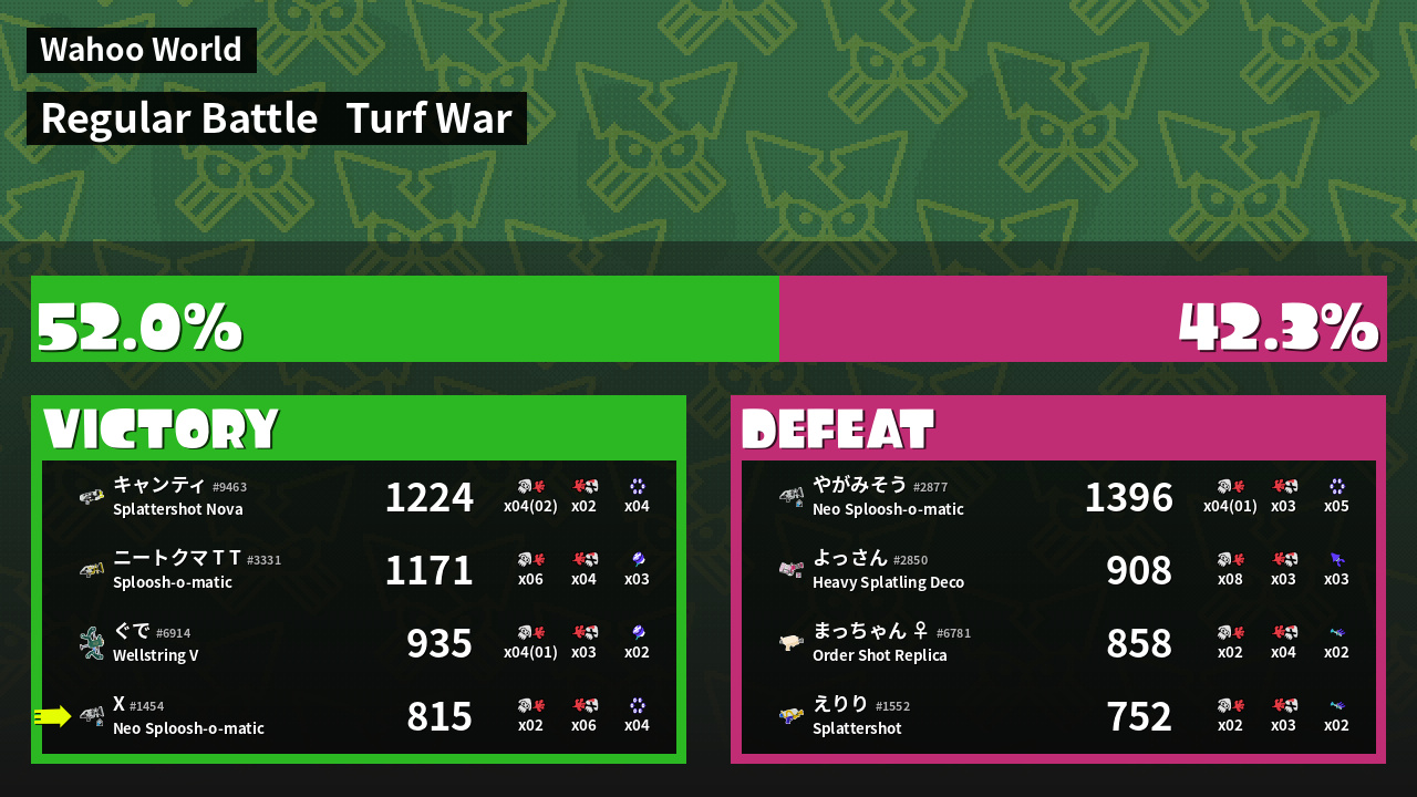 | Mode | Turf War - Regular Battle | ||