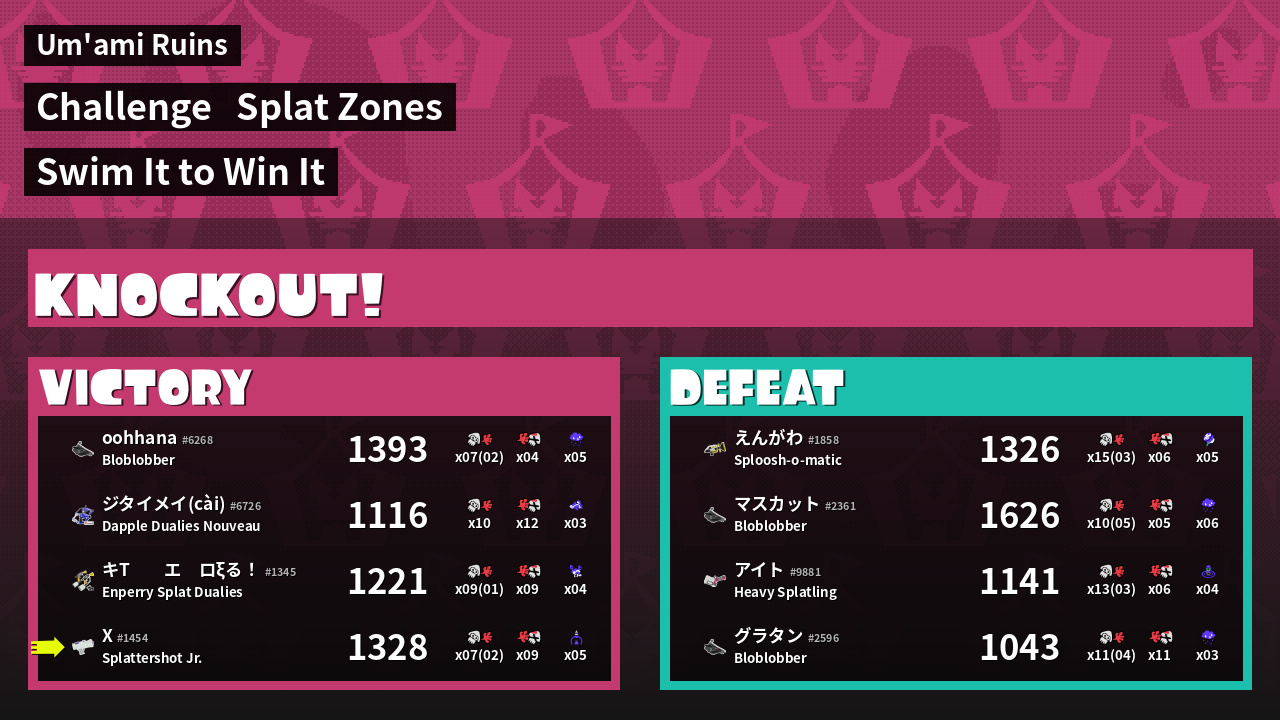 | Medals | #1 Splat Assister #1 Splat Zone Hero #1 Ink Consumer | ||