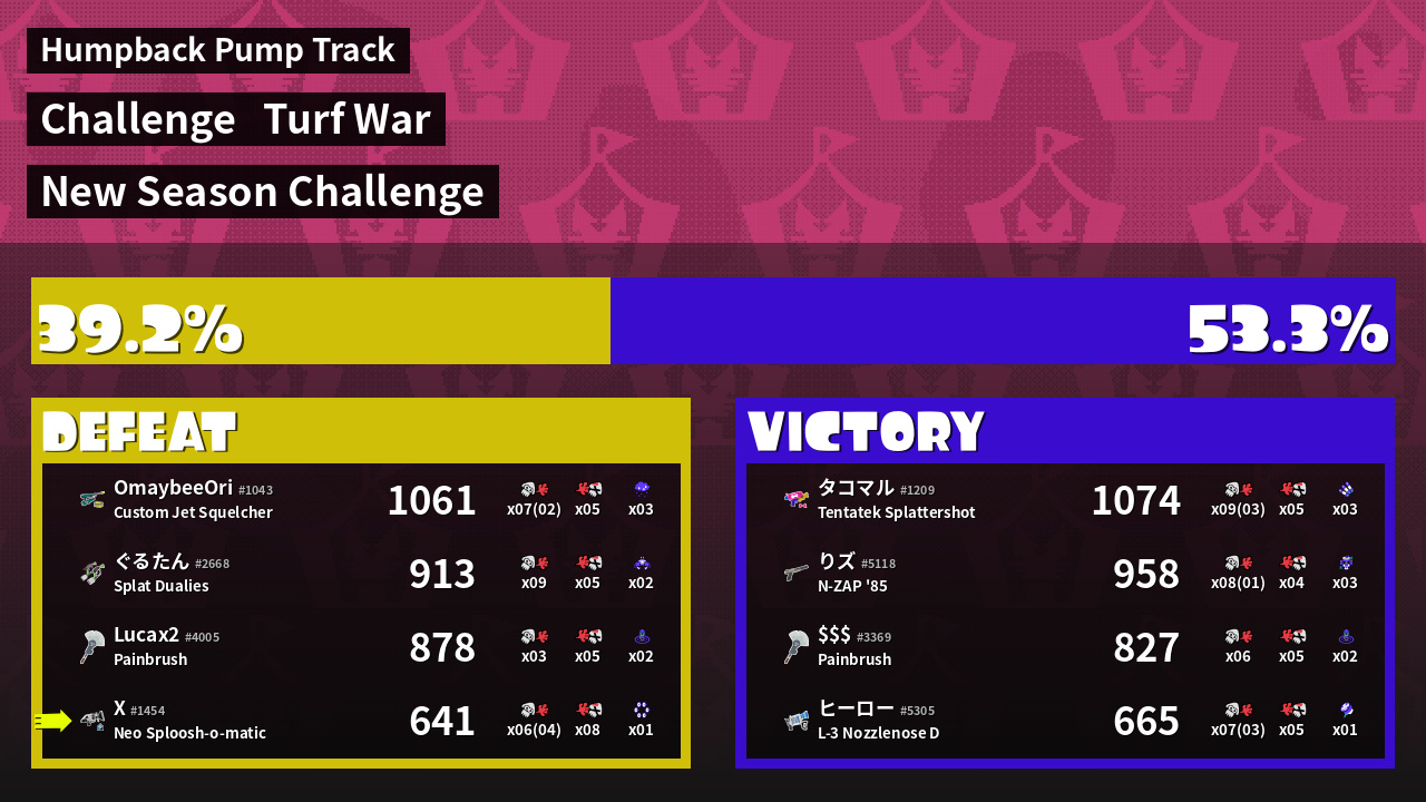 | Medals | #1 Splat Assister #1 Base Defender First Splat! | ||