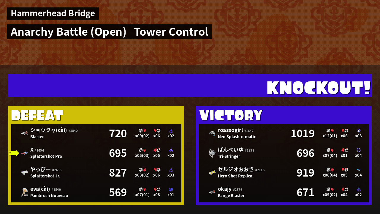 | Medals | #1 Score Booster #1 Super Jump Spot #1 Splat Assister | ||