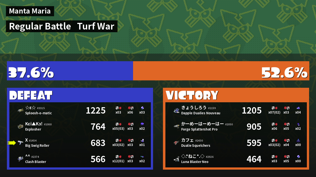 | Mode | Turf War - Regular Battle | ||