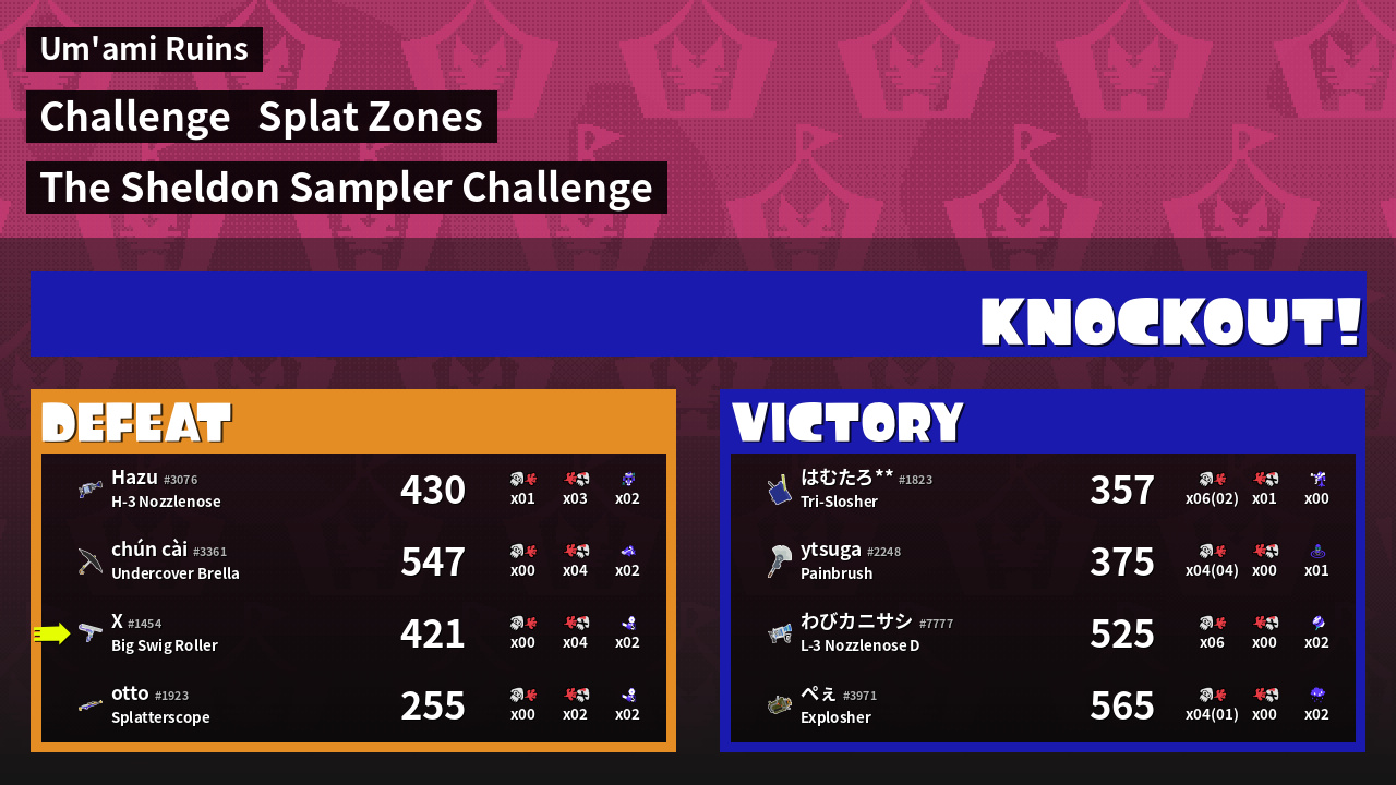 | Medals | #1 Super Jump Spot #1 Splat Zone Hero #2 Splat Zone Inker | ||