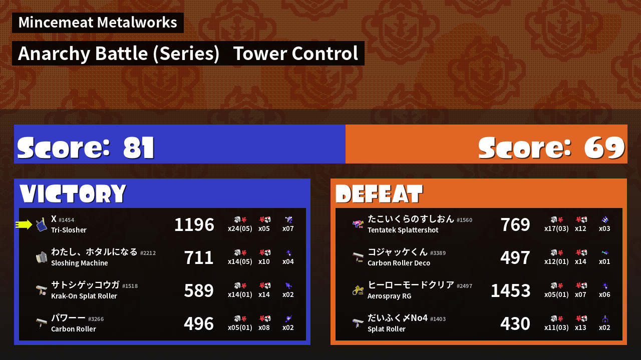 | Mode | Tower Control - Anarchy Battle (Series) | ||
