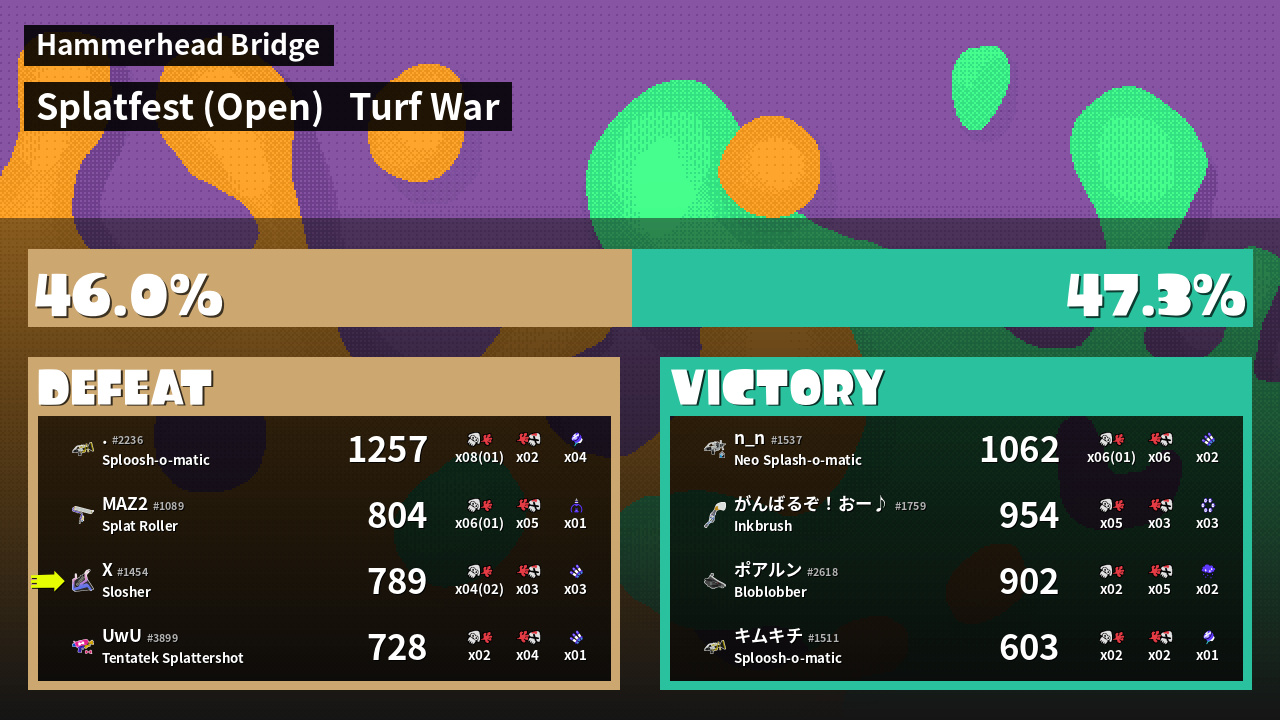 | Medals | #1 Popular Target #1 Splat Assister #1 Ink Consumer | ||