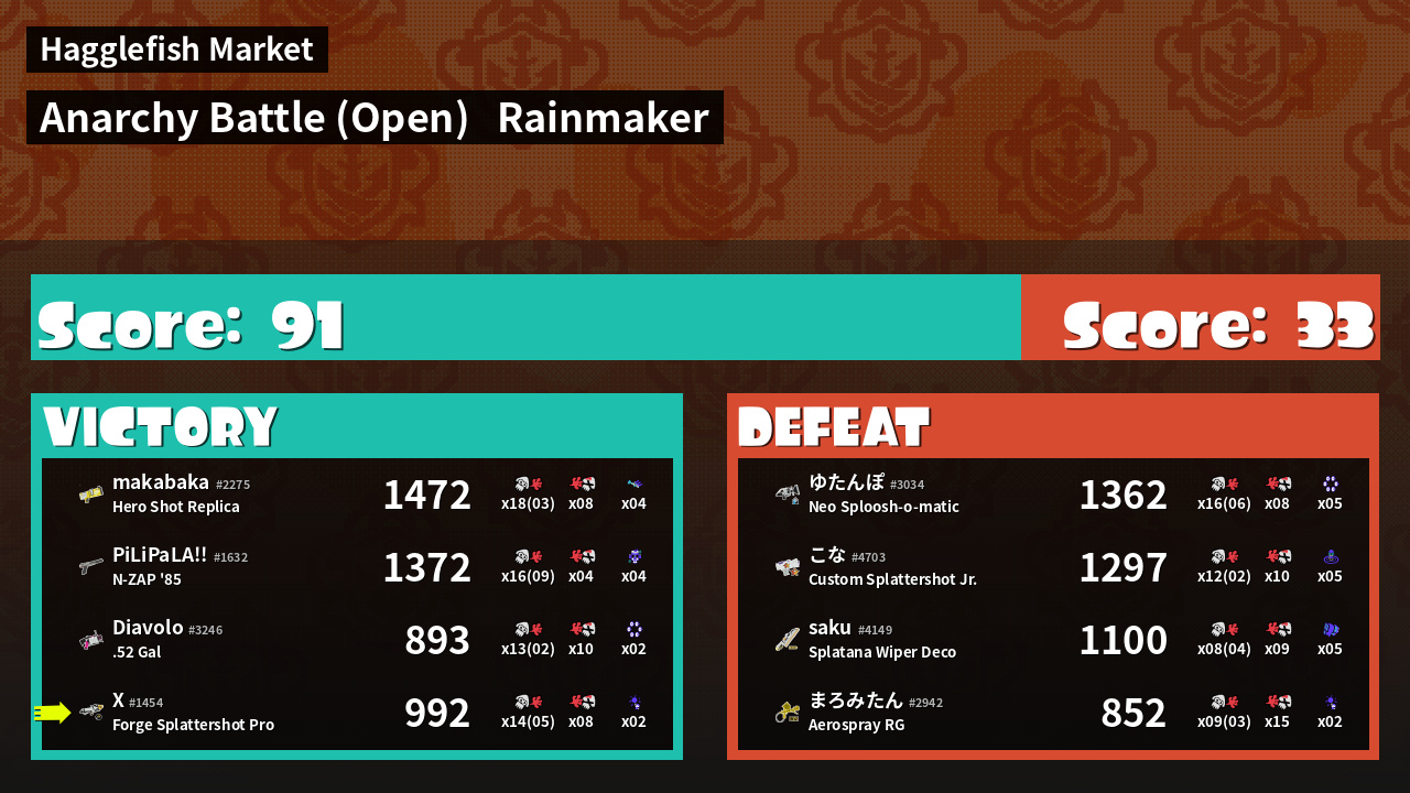 | Mode | Rainmaker - Anarchy Battle (Open) | ||