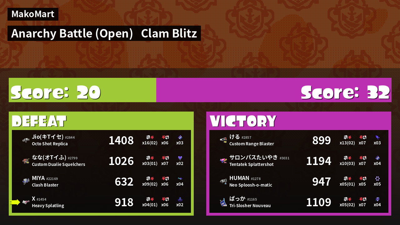| Mode | Clam Blitz - Anarchy Battle (Open) | ||