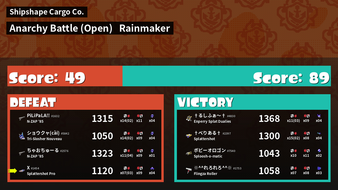 | Mode | Rainmaker - Anarchy Battle (Open) | ||