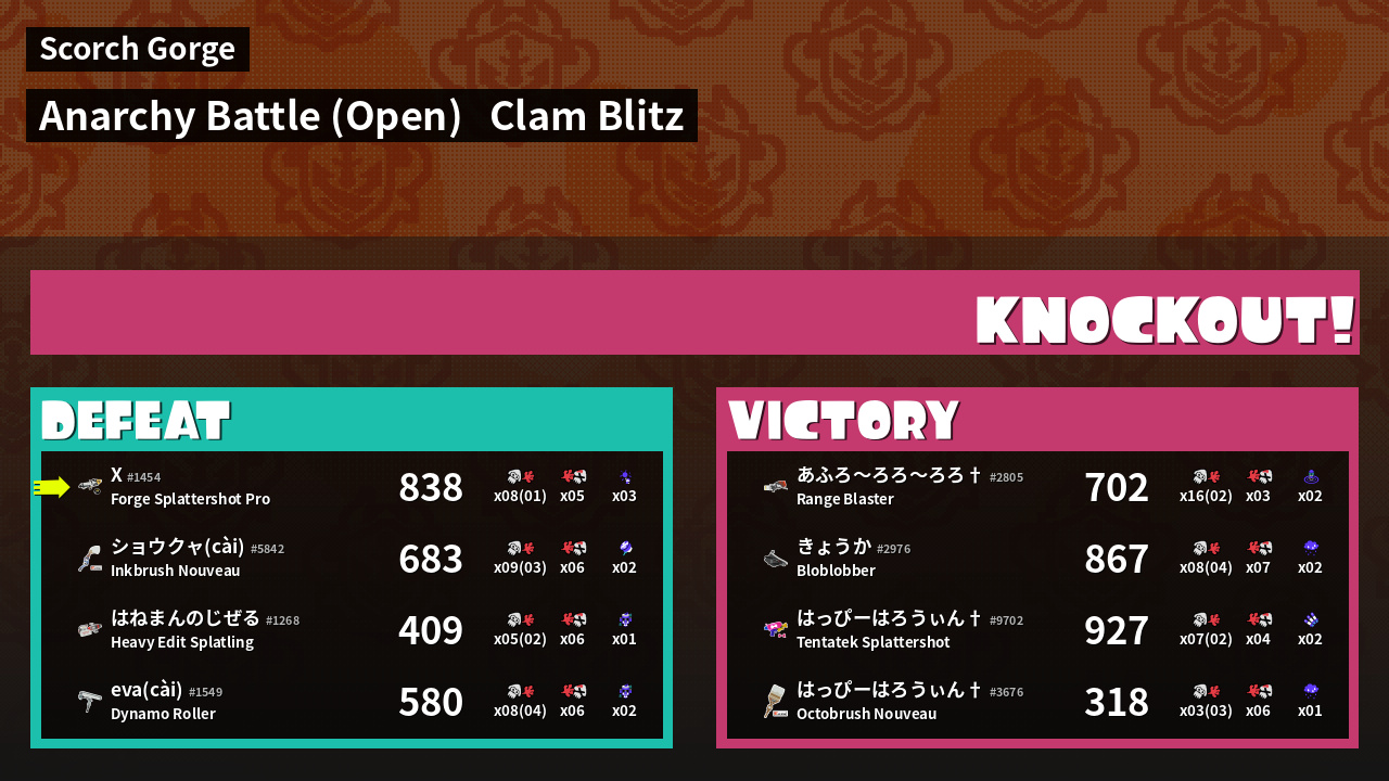 | Mode | Clam Blitz - Anarchy Battle (Open) | ||