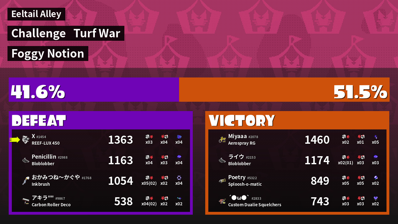 | Mode | Turf War - Challenge | ||