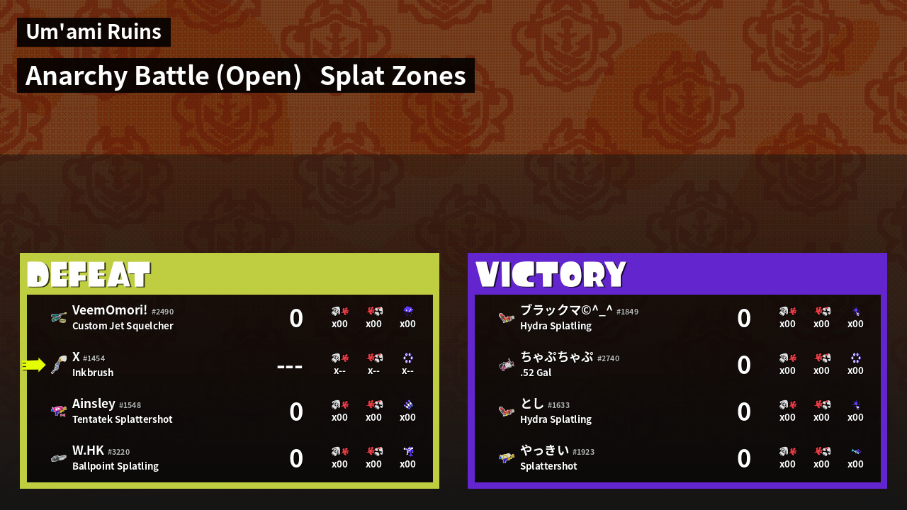 | Mode | Splat Zones - Anarchy Battle (Open) | ||
