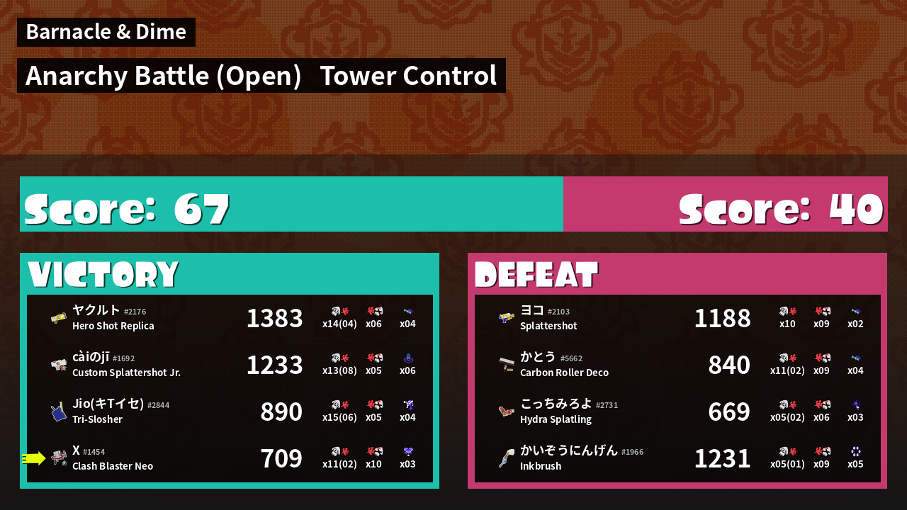 | Mode | Tower Control - Anarchy Battle (Open) | ||