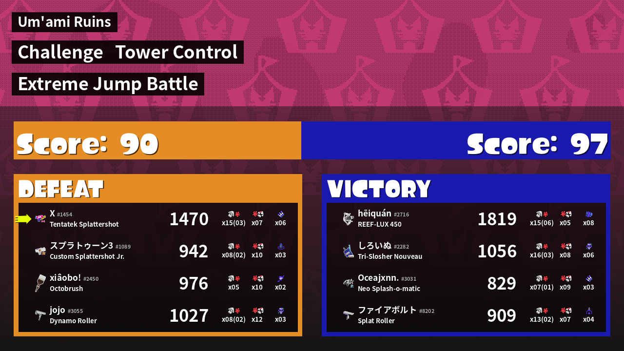 | Medals | #1 Overall Splatter #1 Turf Inker #1 Super Jump Spot | ||