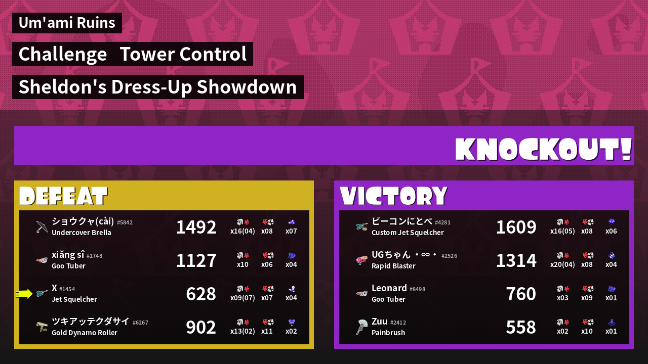 | Medals | #1 Score Booster #1 Splat Assister #1 Checkpoint Breaker | ||