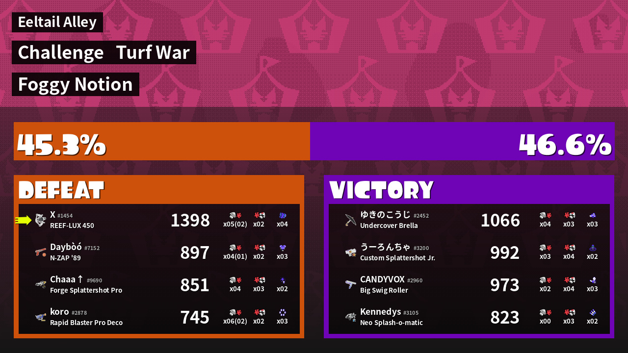 | Mode | Turf War - Challenge | ||