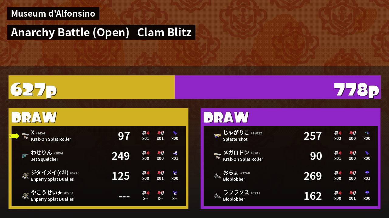 | Mode | Clam Blitz - Anarchy Battle (Open) | ||
