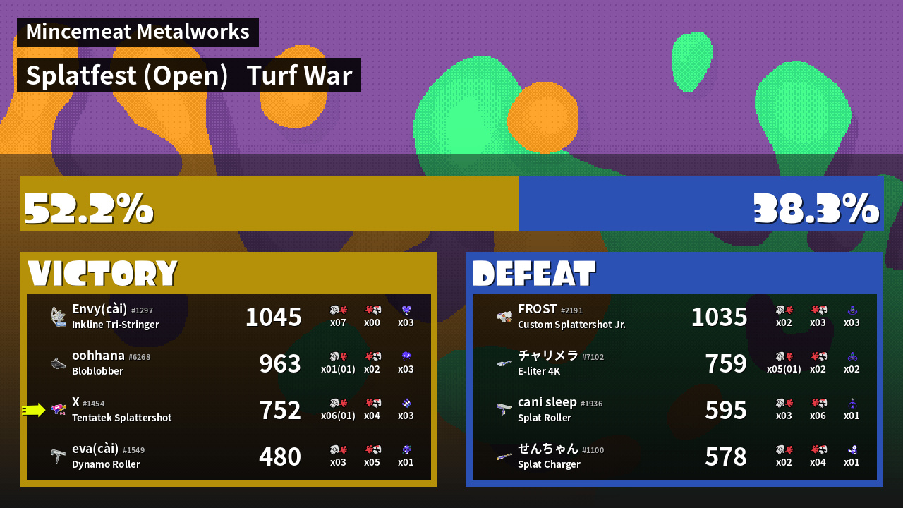 | Medals | #1 Popular Target #1 Splat Assister First Splat! | ||
