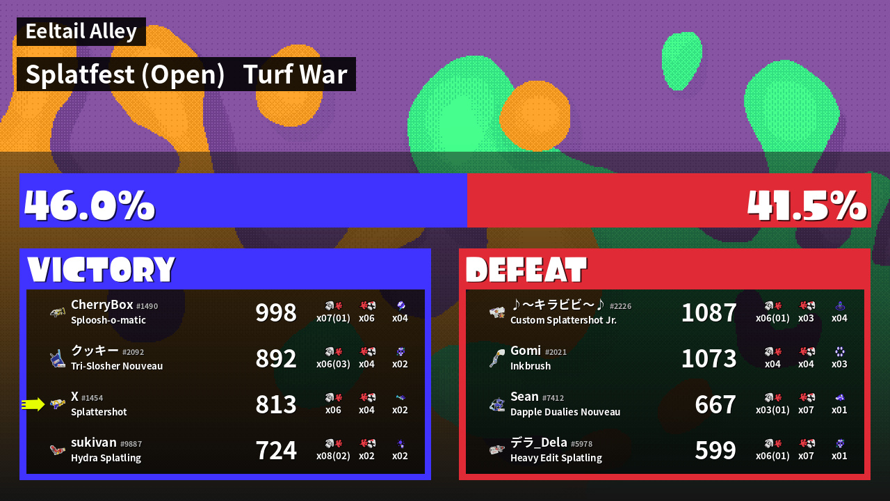 | Medals | #1 Enemy Splatter First Splat! #1 Trizooka User | ||