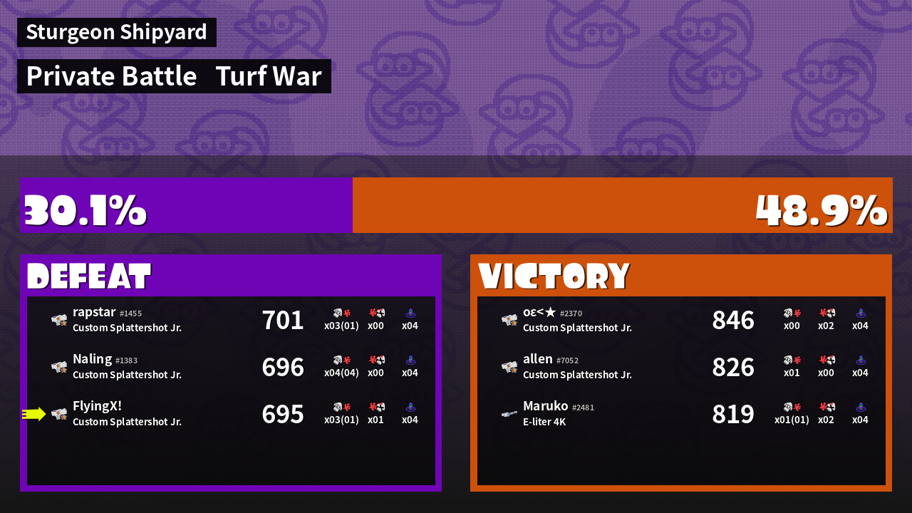 | Mode | Turf War - Private Battle | ||