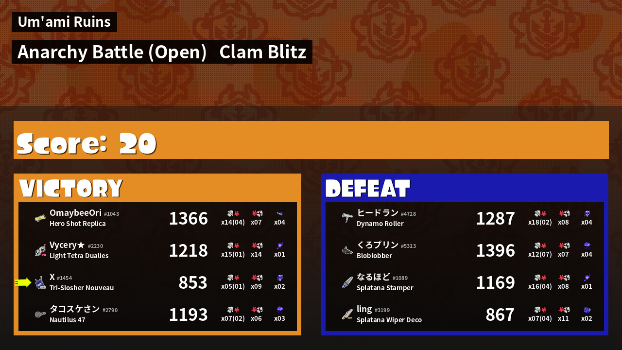 | Mode | Clam Blitz - Anarchy Battle (Open) | ||