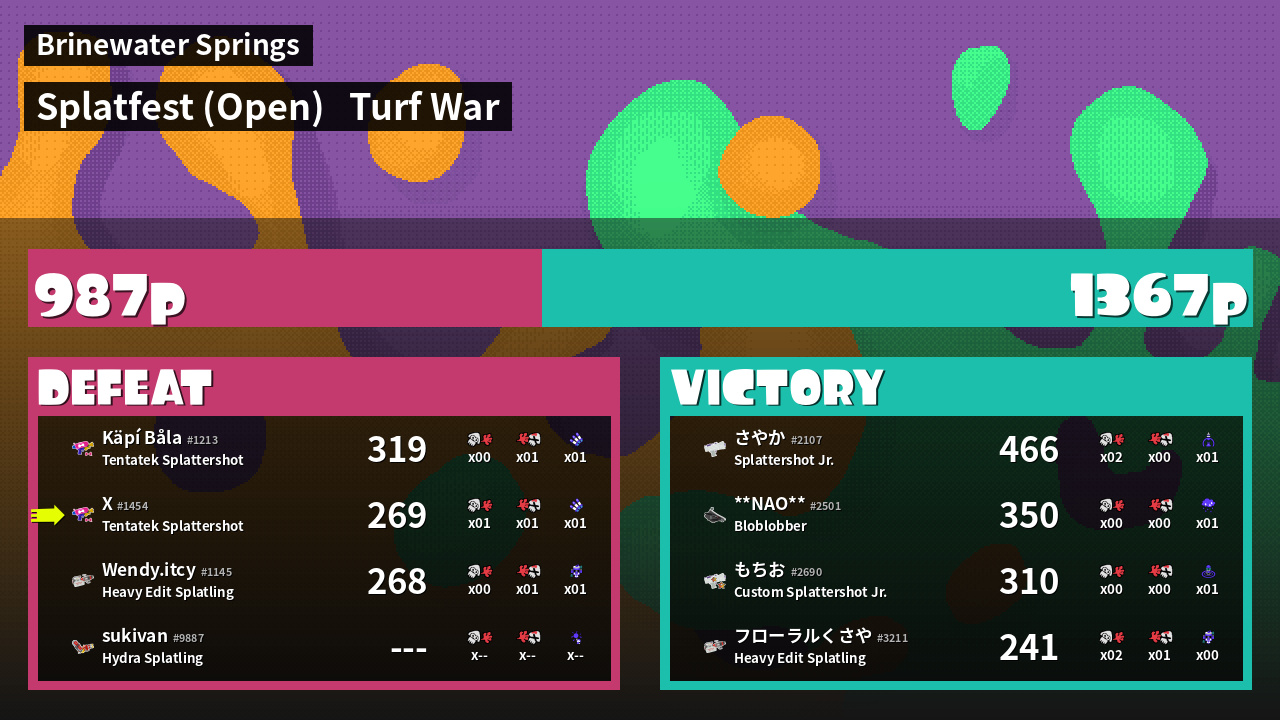 | Mode | Turf War - Splatfest (Open) | ||