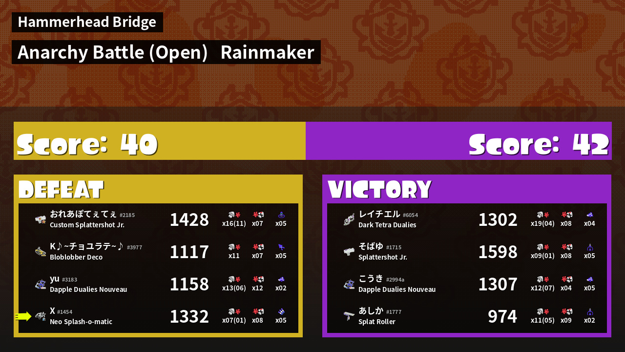 | Mode | Rainmaker - Anarchy Battle (Open) | ||