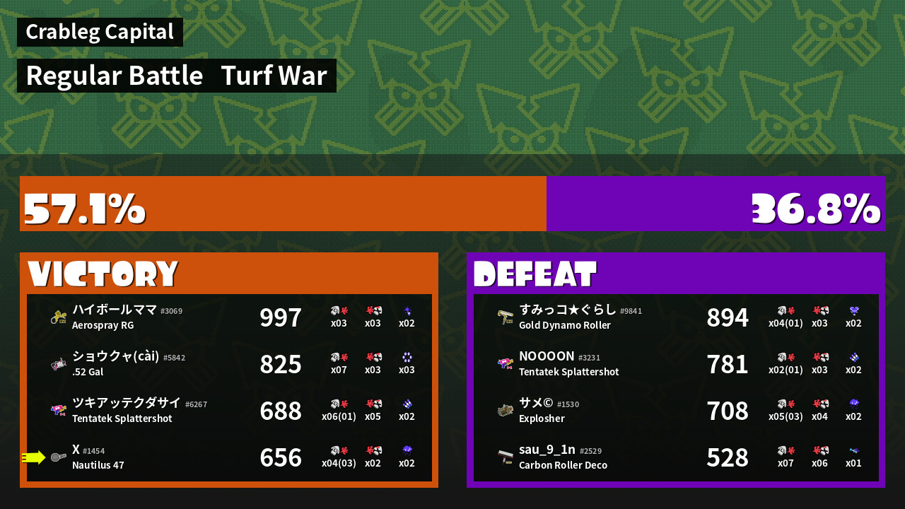| Medals | #1 Super Jump Spot #1 Splat Assister #1 Ink Consumer | ||