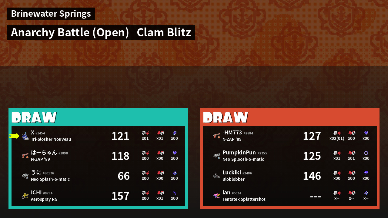 | Mode | Clam Blitz - Anarchy Battle (Open) | ||