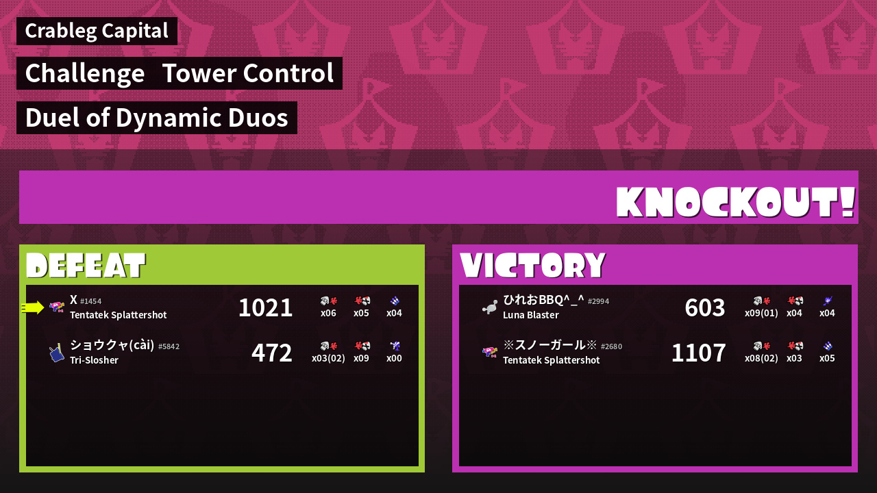 | Medals | #1 Overall Splatter #1 Score Booster Record-Score Setter | ||