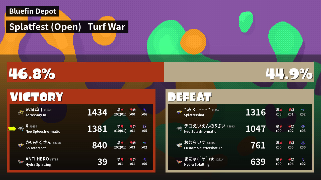 | Medals | #1 Overall Splatter #1 Popular Target #1 Enemy-Base Inker | ||