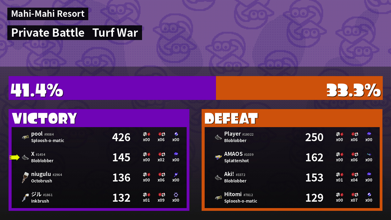 | Mode | Turf War - Private Battle | ||