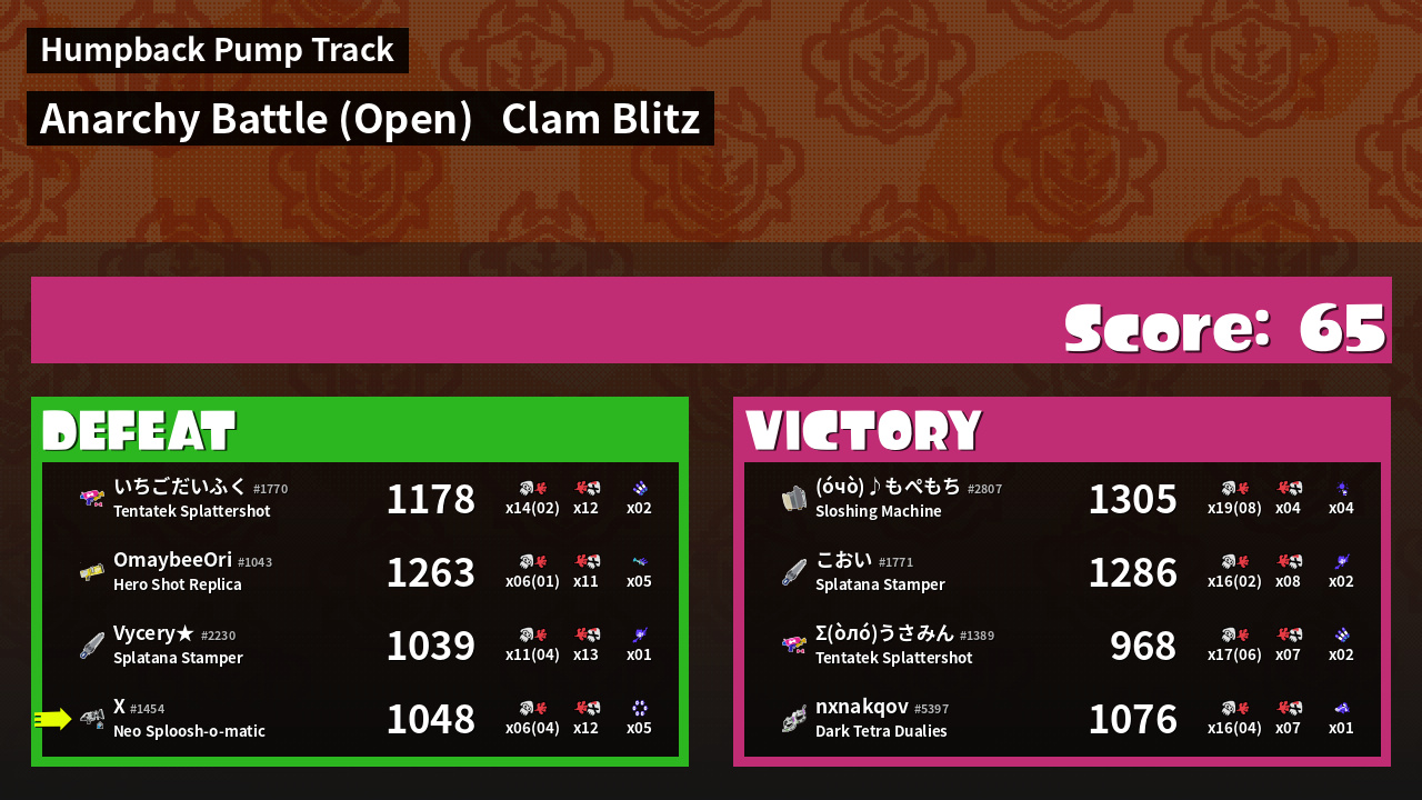 | Mode | Clam Blitz - Anarchy Battle (Open) | ||