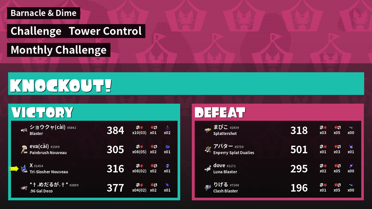 Results of X's Battle