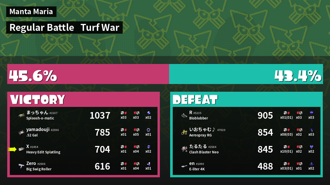 | Mode | Turf War - Regular Battle | ||